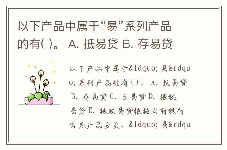 不过,如果这是一道多选题且按照常见考试题库答案来看,大多数银行将“银税易贷”“银政易贷”“乐易贷”“存易贷”明确归入“易”系列,而“抵易贷”有时不算(因为抵押类与纯信用“易”系列有时分开)。