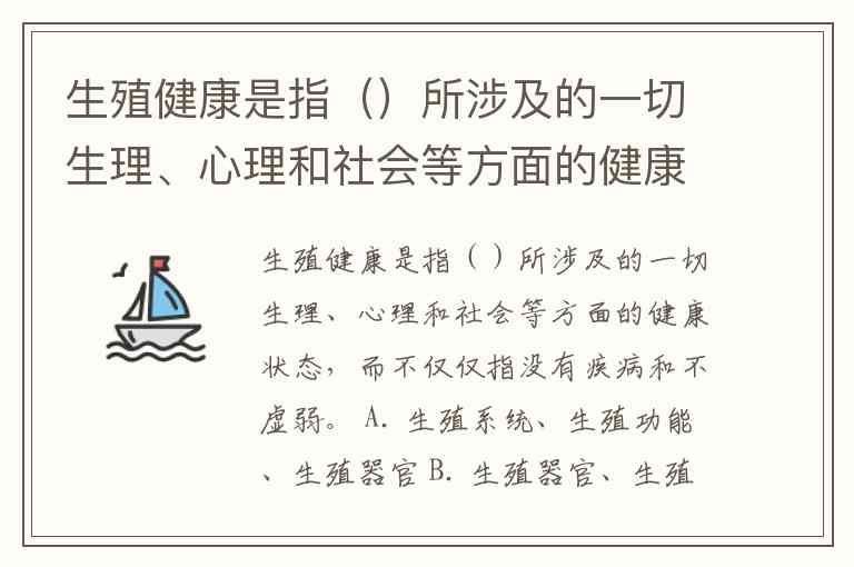 根据世界卫生组织(WHO)对生殖健康的定义,它不仅仅是没有疾病,而是指在生殖系统、生殖功能和生殖过程的所有方面都处于身体、心理和社会适应性的完好状态。