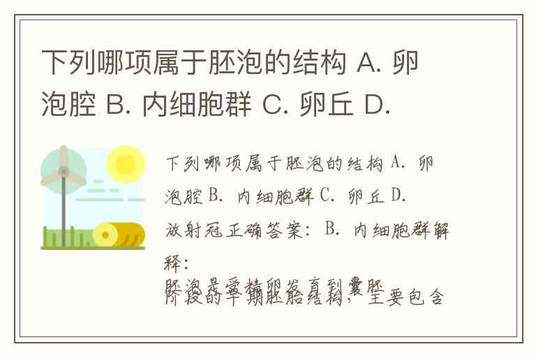 下列哪项属于胚泡的结构 A. 卵泡腔 B. 内细胞群 C. 卵丘 D. 放射冠