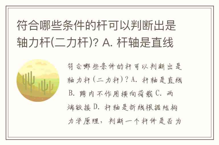 符合哪些条件的杆可以判断出是轴力杆(二力杆)? A. 杆轴是直线 B. 跨内不作用横向荷载 C. 两端铰接 D. 杆轴是折线