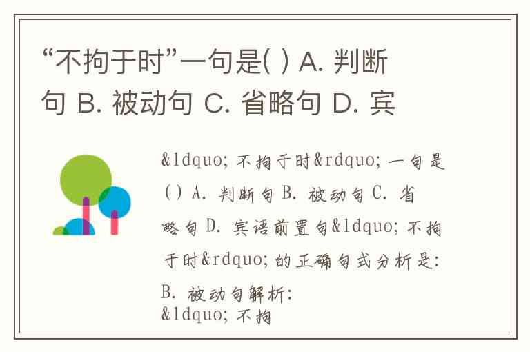 C. 省略句:虽有省略主语,但题干考查的是“不拘于时”本身的结构,其本质是被动句式。