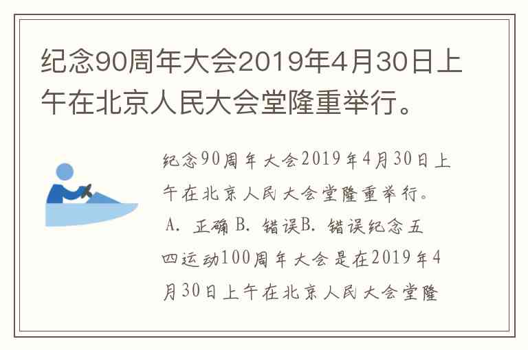 纪念90周年大会2019年4月30日上午在北京人民大会堂隆重举行。 A. 正确 B. 错误
