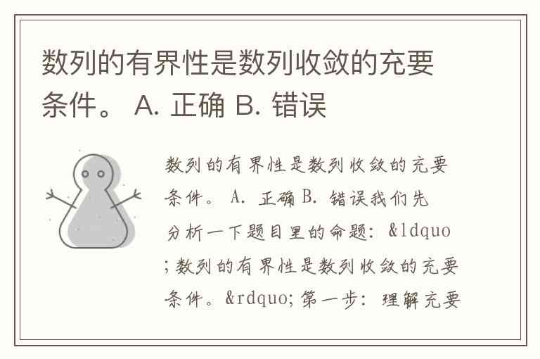 我们先分析一下题目里的命题:“数列的有界性是数列收敛的充要条件。”