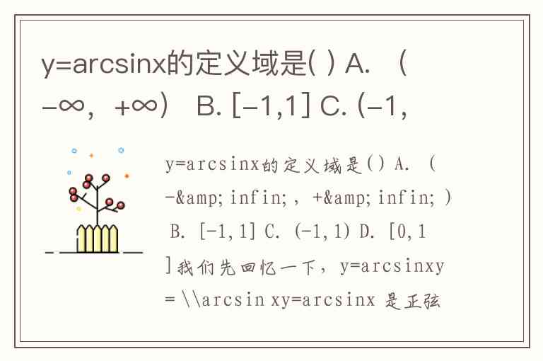 y=arcsinx的定义域是( ) A. (-∞,+∞) B. [-1,1] C. (-1,1) D. [0,1]