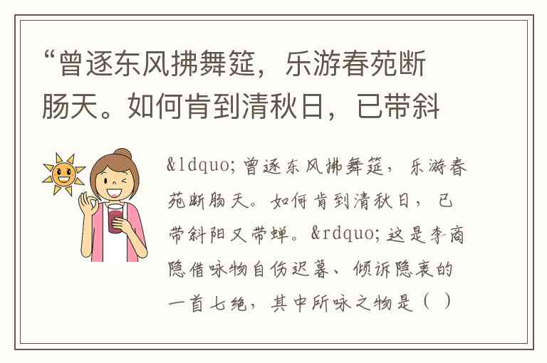 “曾逐东风拂舞筵,乐游春苑断肠天。如何肯到清秋日,已带斜阳又带蝉。”这是李商隐借咏物自伤迟暮、倾诉隐衷的一首七绝,其中所咏之物是( ) A. 柳 B. 梅 C. 落花 D. 秋雁