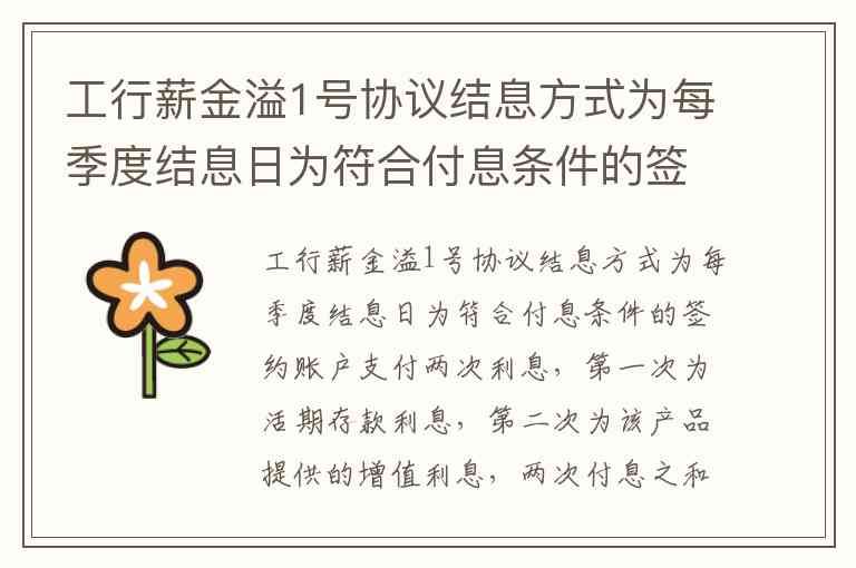 工行薪金溢1号协议结息方式为每季度结息日为符合付息条件的签约账户支付两次利息,第一次为活期存款利息,第二次为该产品提供的增值利息,两次付息之和为按本产品约定的计息标准计算的利息。 A. 正确 B. 错误