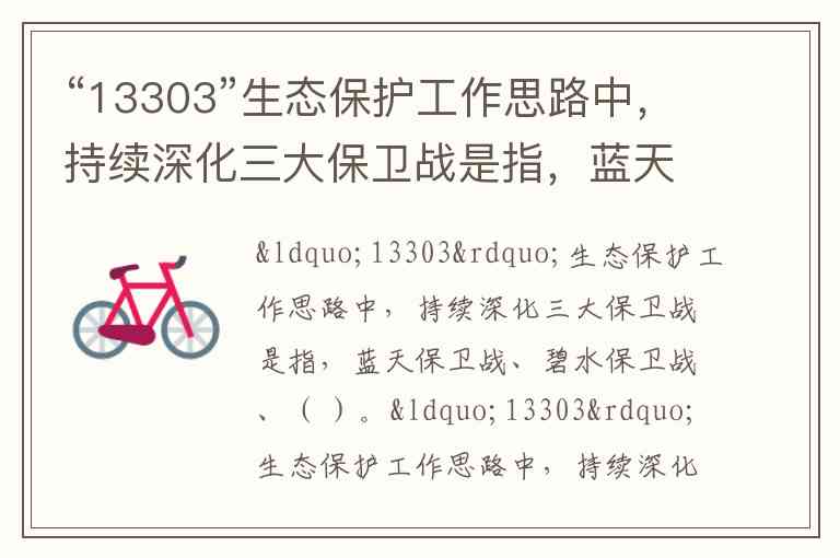 “13303”生态保护工作思路中,持续深化三大保卫战是指,蓝天保卫战、碧水保卫战、( )。