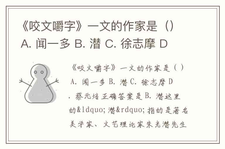 《咬文嚼字》一文的作家是() A. 闻一多 B. 潜 C. 徐志摩 D. 蔡元培