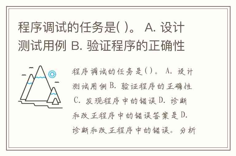 程序调试的任务是( )。 A. 设计测试用例 B. 验证程序的正确性 C. 发现程序中的错误 D. 诊断和改正程序中的错误