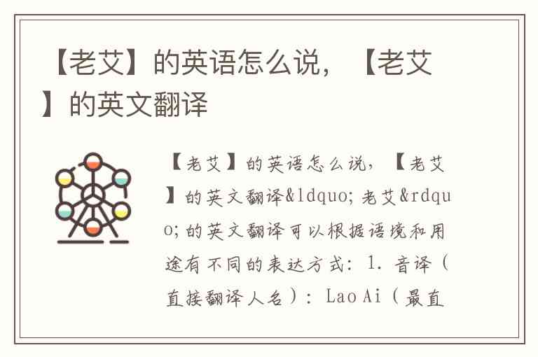 “老艾”的英文翻译可以根据语境和用途有不同的表达方式:
