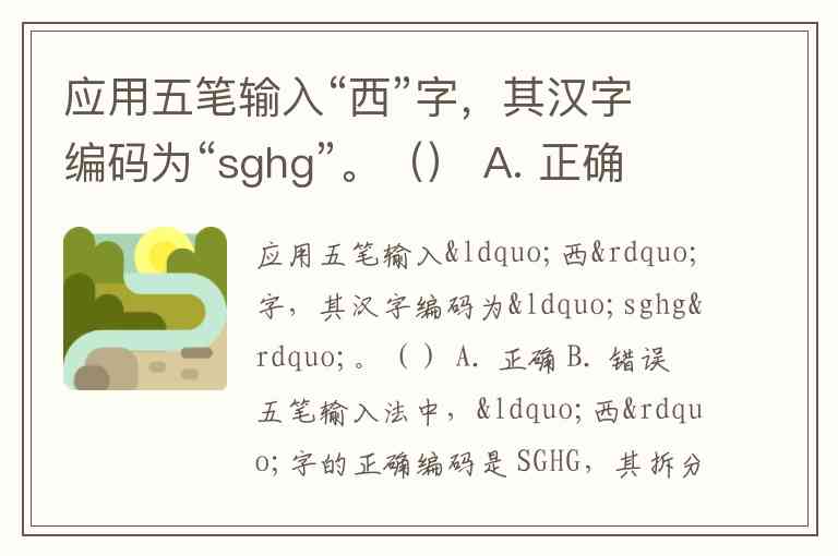 应用五笔输入“西”字,其汉字编码为“sghg”。() A. 正确 B. 错误