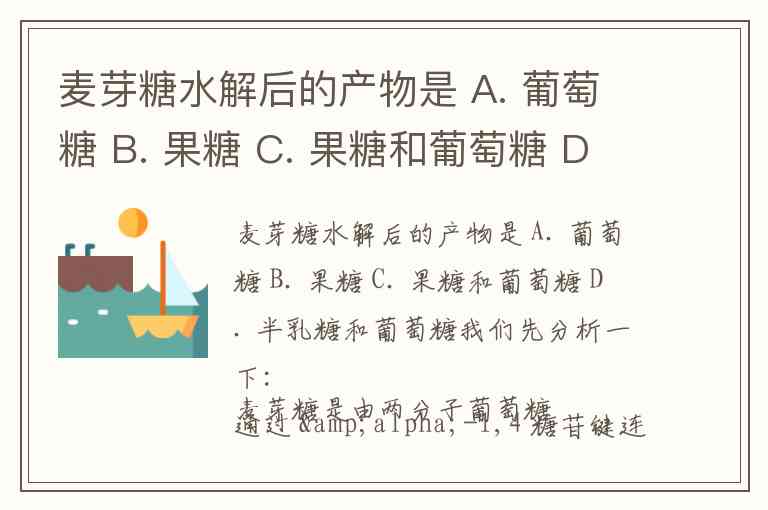 我们先分析一下:麦芽糖是由两分子葡萄糖通过 α-1,4 糖苷键连接而成的二糖,属于还原性二糖。在水解时,糖苷键断裂,生成两个葡萄糖分子,不会生成果糖或半乳糖。