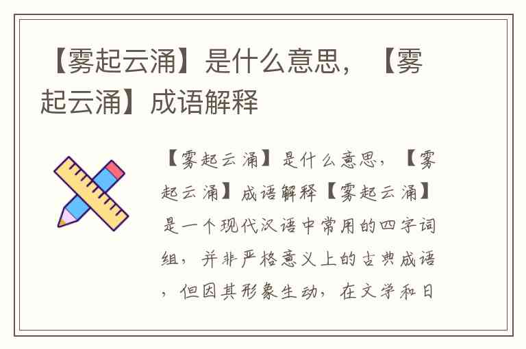 风起云涌:这是最接近且更权威的成语,比喻事物迅速发展,声势浩大。【雾起云涌】可以看作是“风起云涌”的一个意象变体,更侧重于“弥漫、充斥”的视觉效果。