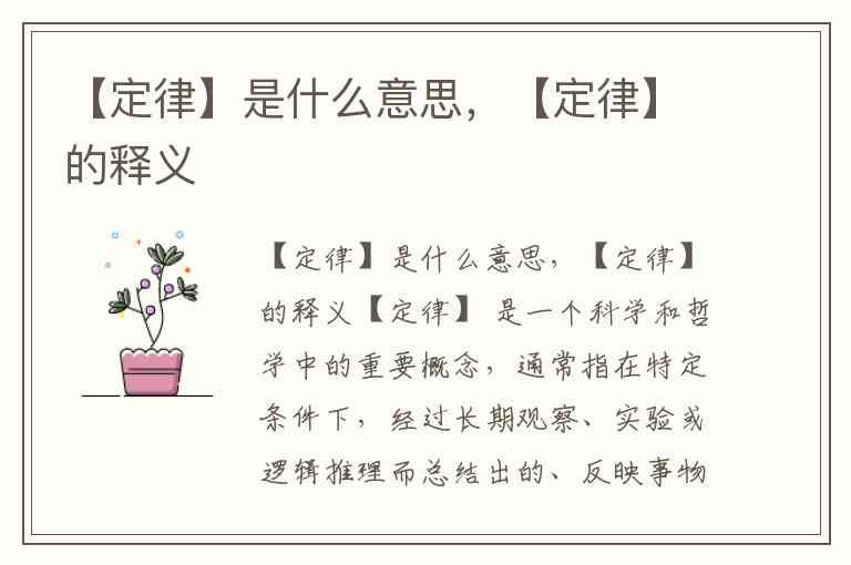 【定律】 是一个科学和哲学中的重要概念,通常指在特定条件下,经过长期观察、实验或逻辑推理而总结出的、反映事物之间必然联系和客观规律的科学论断。