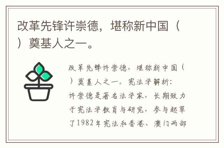 改革先锋许崇德,堪称新中国()奠基人之一。