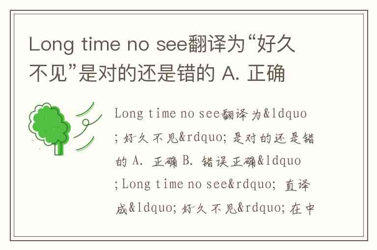 Long time no see翻译为“好久不见”是对的还是错的 A. 正确 B. 错误