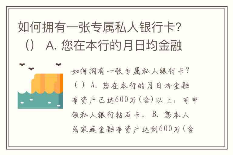 根据您提供的选项,关于如何拥有一张专属私人银行卡(以该银行为例),符合条件的途径如下: