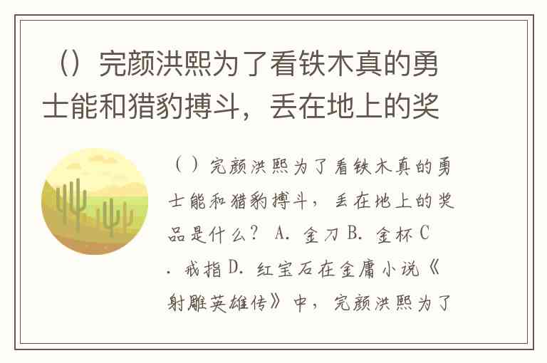 ()完颜洪熙为了看铁木真的勇士能和猎豹搏斗,丢在地上的奖品是什么? A. 金刀 B. 金杯 C. 戒指 D. 红宝石