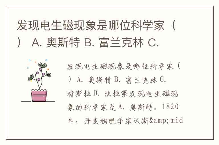 发现电生磁现象是哪位科学家() A. 奥斯特 B. 富兰克林 C. 特斯拉 D. 法拉第