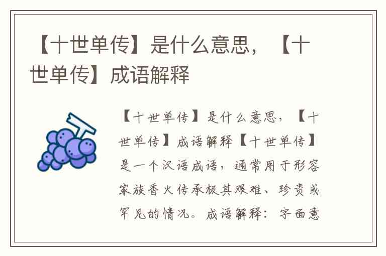 【十世单传】是一个汉语成语,通常用于形容家族香火传承极其艰难、珍贵或罕见的情况。