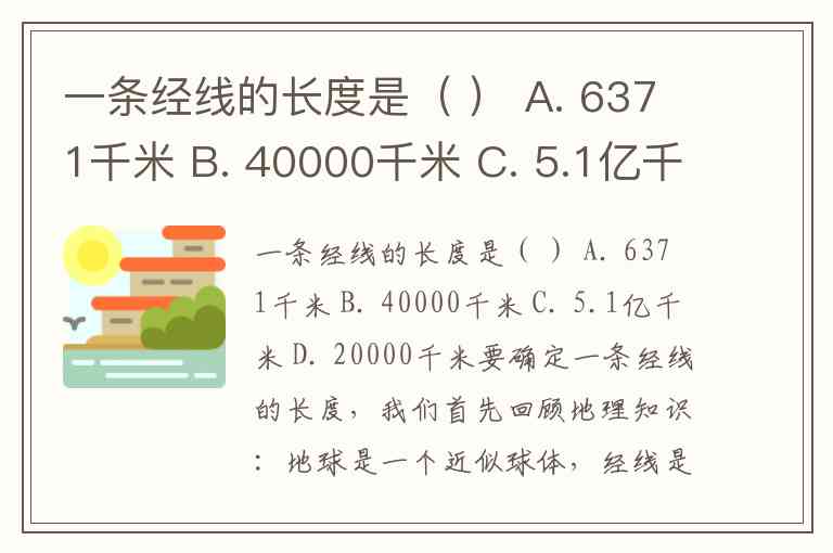 一条经线的长度是( ) A. 6371千米 B. 40000千米 C. 5.1亿千米 D. 20000千米