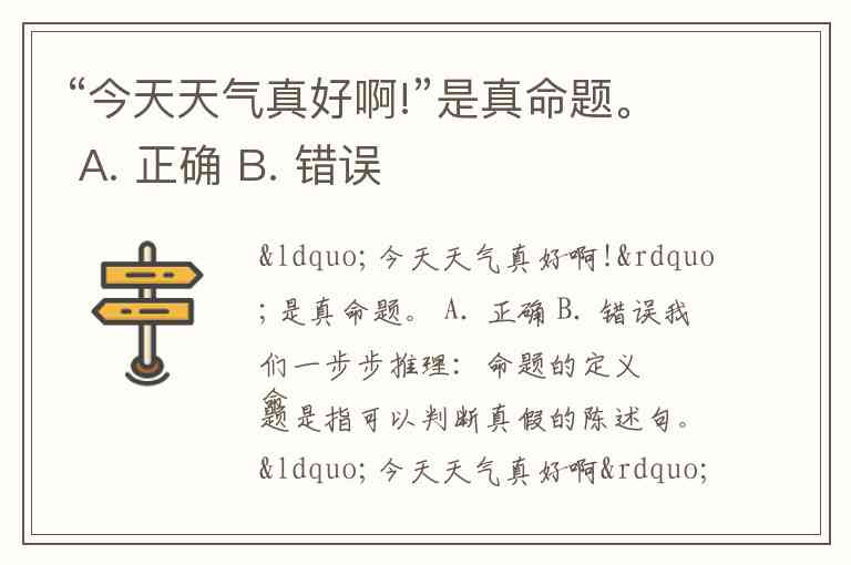 “今天天气真好啊!”是真命题。 A. 正确 B. 错误