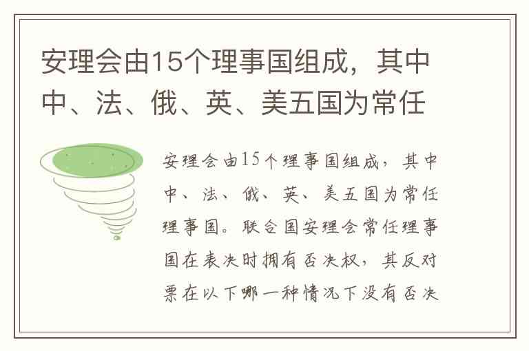 而对于实质性问题的决议,不仅需要至少9票同意,还必须没有任何一个常任理事国投反对票(弃权不算否决),否则决议不能通过。