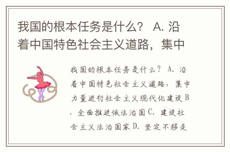我国的根本任务是什么? A. 沿着中国特色社会主义道路,集中力量进行社会主义现代化建设 B. 全面推进依法治国 C. 建设社会主义法治国家 D. 坚定不移走中国特色社会主义法治道路