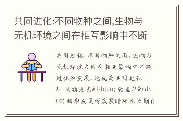 A:发光“钓鱼竿”是黑暗环境自然选择的结果 → 强调环境对生物性状的塑造,但这不是共同进化(题干问共同进化相关),所以判断为“错误”合理。