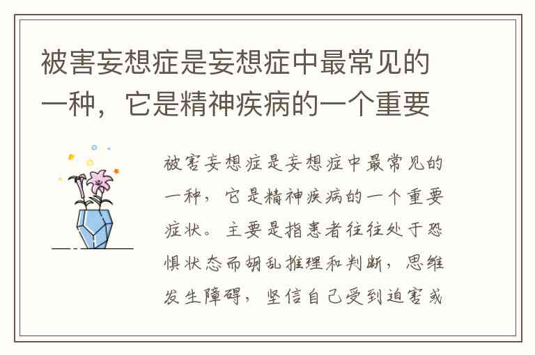 核心是坚信自己受到迫害、伤害、阴谋针对等。