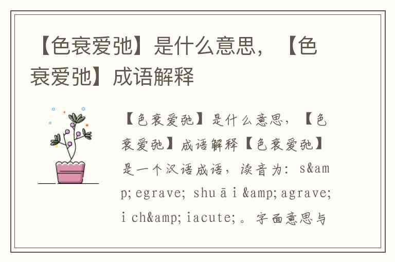 整体意思是:因女子容颜衰老而失去宠爱或爱情淡薄。常用来比喻以美貌得宠的人,一旦姿色衰退,就会遭到遗弃。