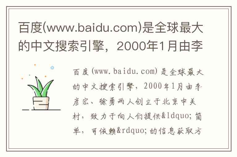 百度(www.baidu.com)是全球最大的中文搜索引擎,2000年1月由李彦宏、徐勇两人创立于北京中关村,致力于向人们提供“简单,可依赖”的信息获取方式。请问 “百度”二字源于中国宋朝词人(谁)在《青玉案》中的诗句:“众里寻他千百度”,象征着百度对中文信息检索技术的执著追求? A. 王安石 B. 范仲淹 C. 辛弃疾 D. 苏轼