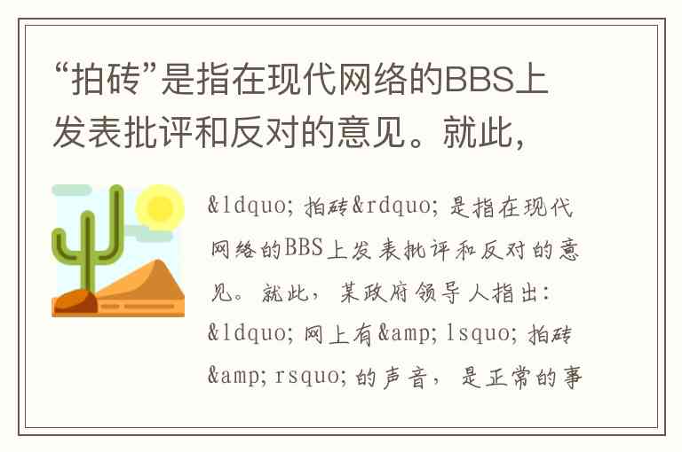 政府重视“拍砖”并从中吸取有益意见,有助于收集民意、集中民智,推动决策更加科学民主,符合题意。
