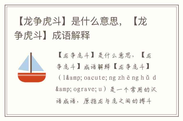 【龙争虎斗】是什么意思,【龙争虎斗】成语解释