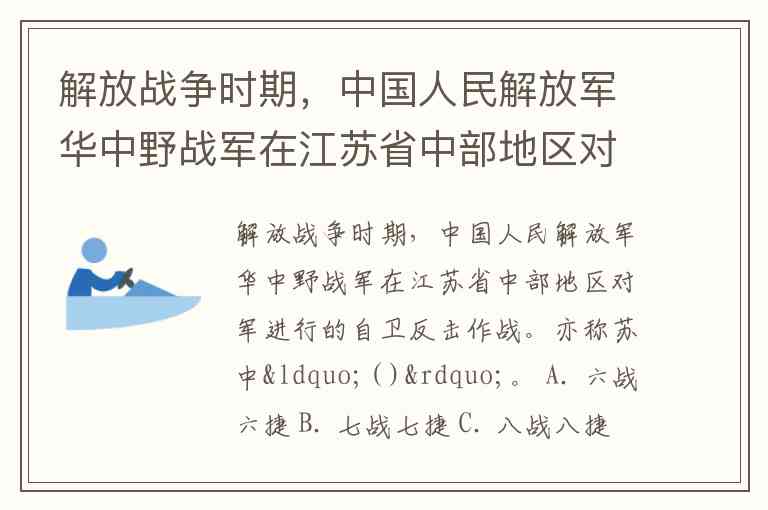解放战争时期,中国人民解放军华中野战军在江苏省中部地区对军进行的自卫反击作战。亦称苏中“( )”。 A. 六战六捷 B. 七战七捷 C. 八战八捷 D. 五战五捷