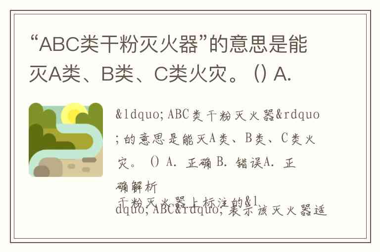 “ABC类干粉灭火器”的意思是能灭A类、B类、C类火灾。 () A. 正确 B. 错误