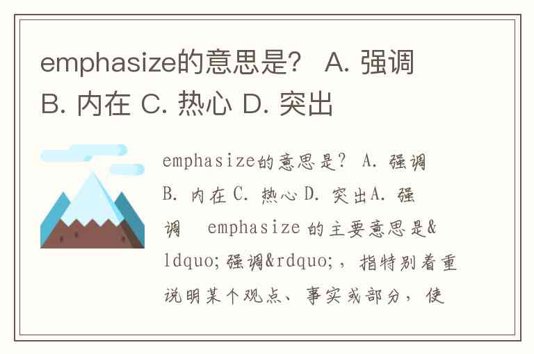 emphasize的意思是? A. 强调 B. 内在 C. 热心 D. 突出