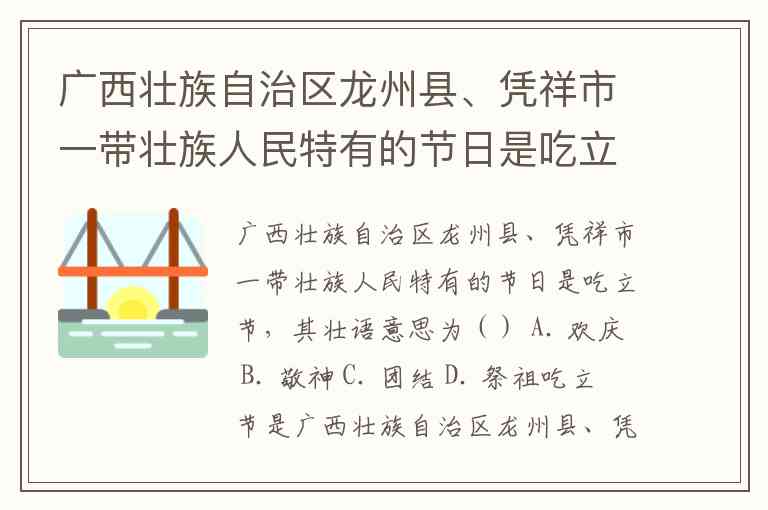 广西壮族自治区龙州县、凭祥市一带壮族人民特有的节日是吃立节,其壮语意思为() A. 欢庆 B. 敬神 C. 团结 D. 祭祖