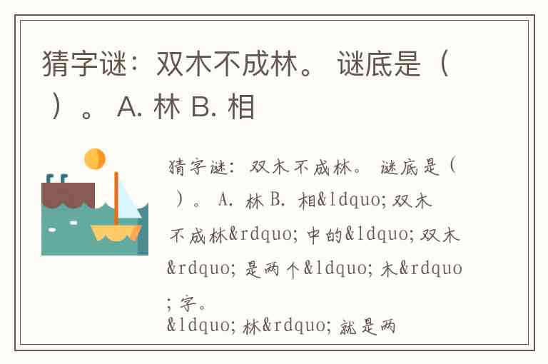 猜字谜:双木不成林。 谜底是( )。 A. 林 B. 相