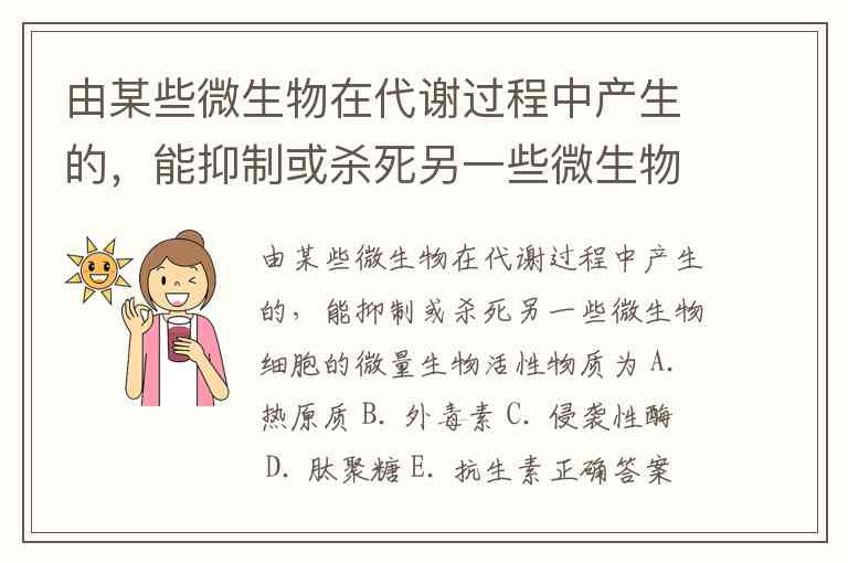 由某些微生物在代谢过程中产生的,能抑制或杀死另一些微生物细胞的微量生物活性物质为 A. 热原质 B. 外毒素 C. 侵袭性酶 D. 肽聚糖 E. 抗生素