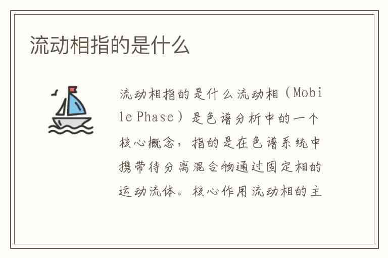 流动相(Mobile Phase)是色谱分析中的一个核心概念,指的是在色谱系统中携带待分离混合物通过固定相的运动流体。