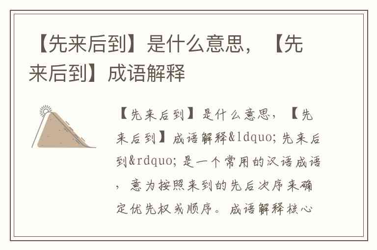 “先来后到”是一个常用的汉语成语,意为按照来到的先后次序来确定优先权或顺序。