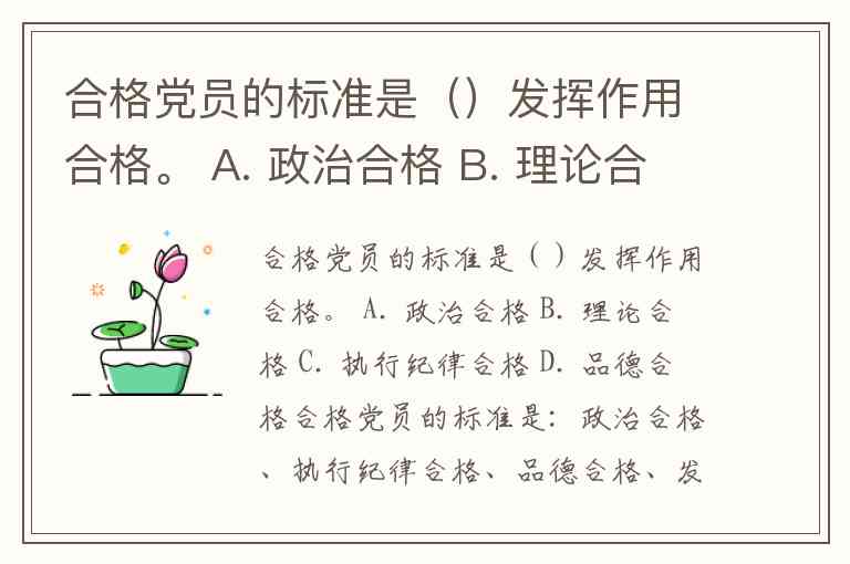 合格党员的标准是()发挥作用合格。 A. 政治合格 B. 理论合格 C. 执行纪律合格 D. 品德合格