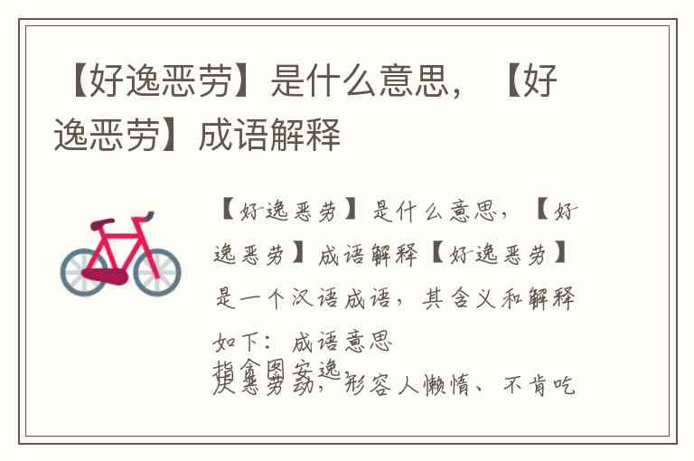整体意为“贪图安逸,厌恶劳动”,常用来批评那些不愿付出努力、只想享受生活的人。