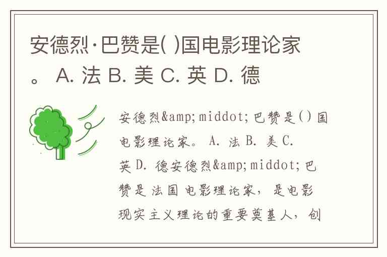 安德烈·巴赞是( )国电影理论家。 A. 法 B. 美 C. 英 D. 德