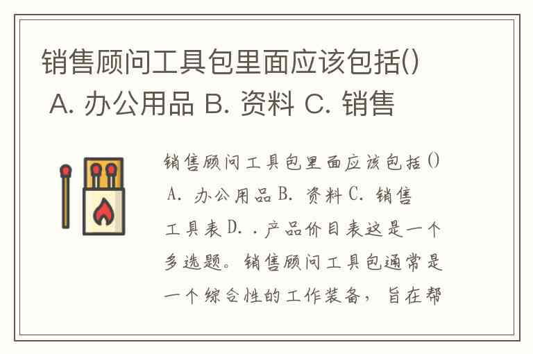 销售顾问工具包里面应该包括() A. 办公用品 B. 资料 C. 销售工具表 D. .产品价目表