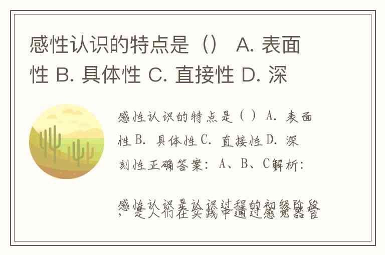 感性认识的特点是() A. 表面性 B. 具体性 C. 直接性 D. 深刻性