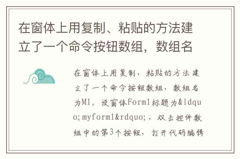 在命令按钮数组 M1 的 第 3 个按钮 的 Click 事件中,代码里写的是: