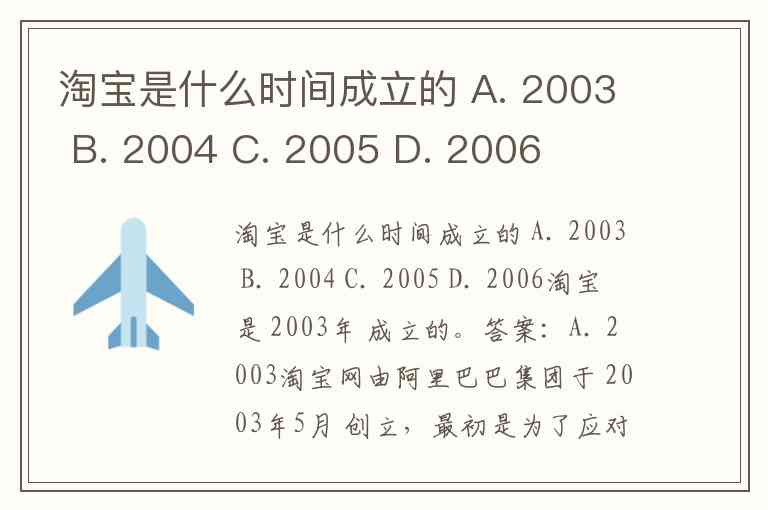淘宝是什么时间成立的 A. 2003 B. 2004 C. 2005 D. 2006