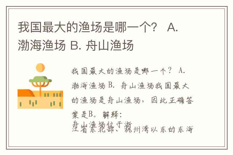 我国最大的渔场是哪一个? A. 渤海渔场 B. 舟山渔场